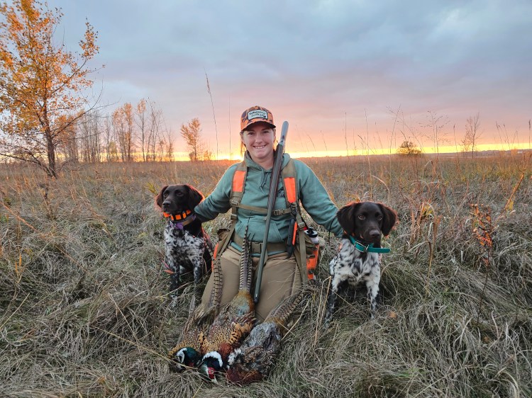 Hi, my name is Jennifer Kellogg, owner of Buckwood Kennel. I grew up with various hunting dog breeds and have always trained dogs to hunt. Breeds that I had growing up include treeing walker coonhounds, beagles, jack russel terriers, german shorthair pointers, a golden retriever and two brittanys. All of these breeds have their own unique traits and are more pronounced at hunting certain game than others. I greatly enjoy each breed for its unique qualities. My latest hunting dog was a brittany who I trained as an upland hunting dog, but has retired from hunting. As I began to search for another hunting companion, I researched for what I was looking for in a dog. Qualities that are important to me are a strong hunting instinct, highly cooperative, friendly and an off switch in the house. And that’s when I found the Small Munsterlander breed.