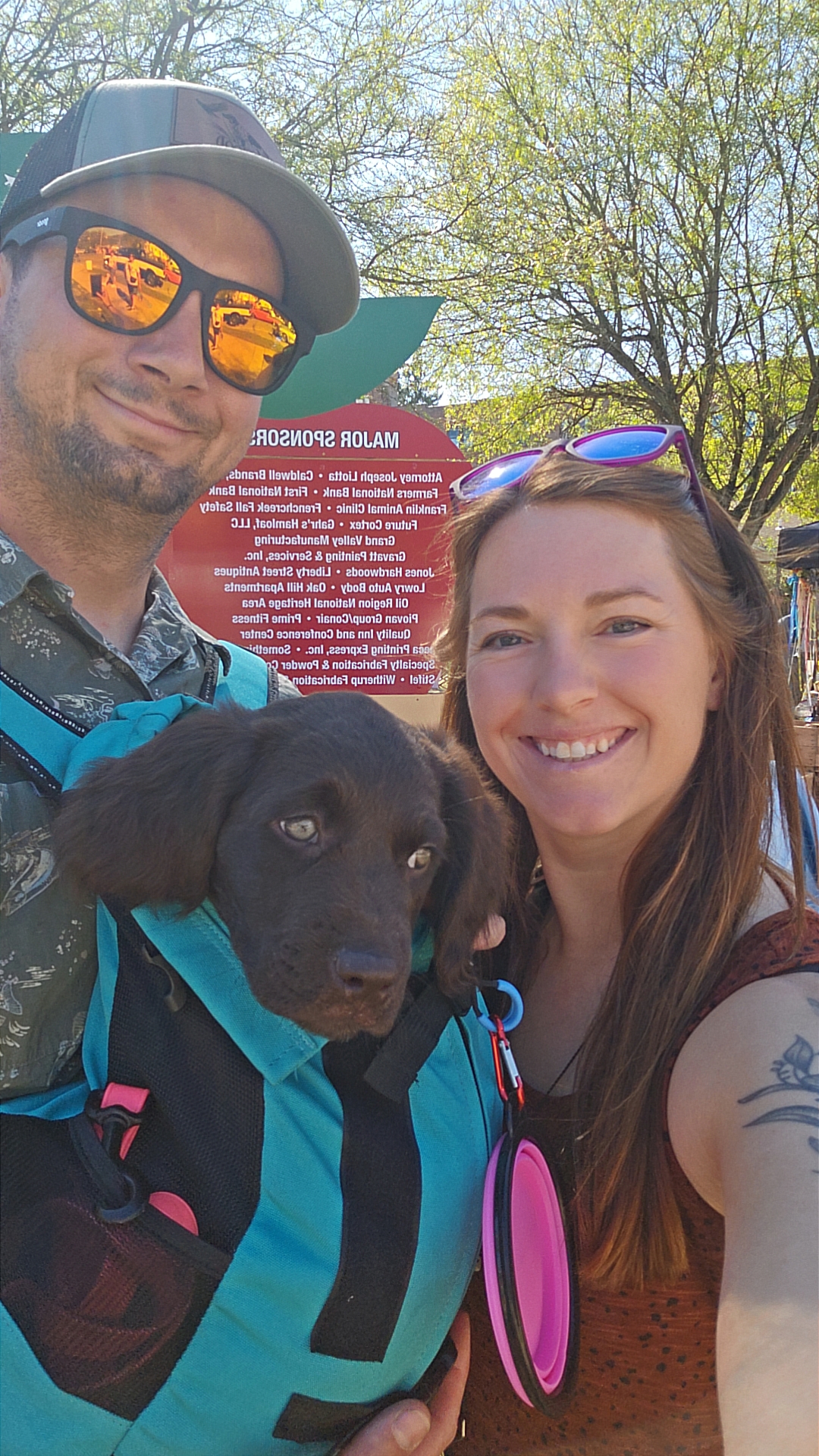 Our dogs are a huge part of our family! We enjoy their off switches in the house and love taking them hunting. They have also gone with us to pick out Christmas trees, go hiking, go on vacation, go to festivals and one was in our wedding. We love our dogs!