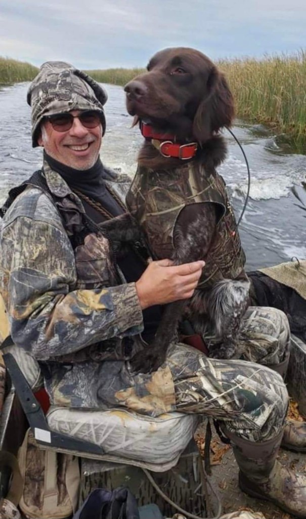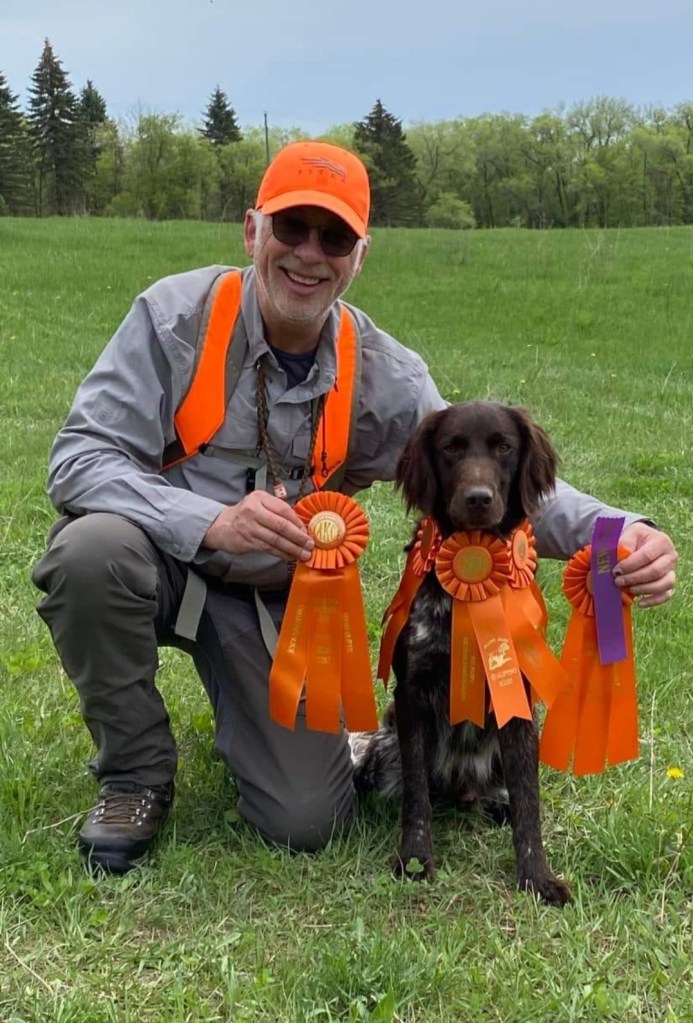 Lovec is from Brush Dale Kennels in Iowa and now lives in Cokato, Minnesota with his owner Scott Green. Lovec lives with another small munsterlander, Jager or VC IntCH Brush Dale’s Open Season MH. Lovec is a very handsome dog with a medium dense, soft, dark roan coat with correct furnishings. Lovec has a very nice masculine head and is a exceptional example of the small munsterlander breed. Lovec is a very affectionate dog who loves attention from his owner, Scott. Lovec will place his paw on Scott’s hand or arm to try and get his attention. You’ll know if Lovec really likes you.. every time I see him he “purs” at me. What you could only imagine hearing, a dog making a purring noise like a cat. It’s Lovec’s way of showing affection.
