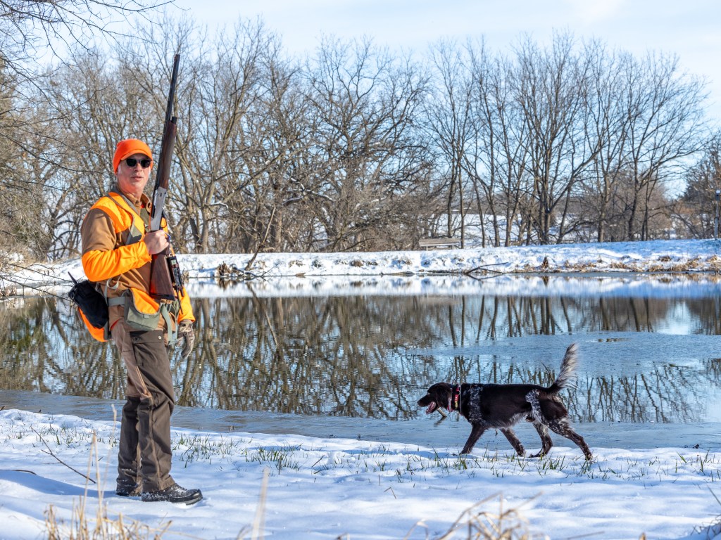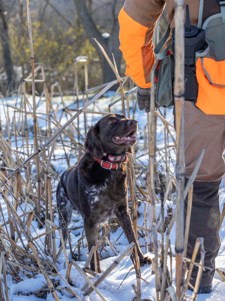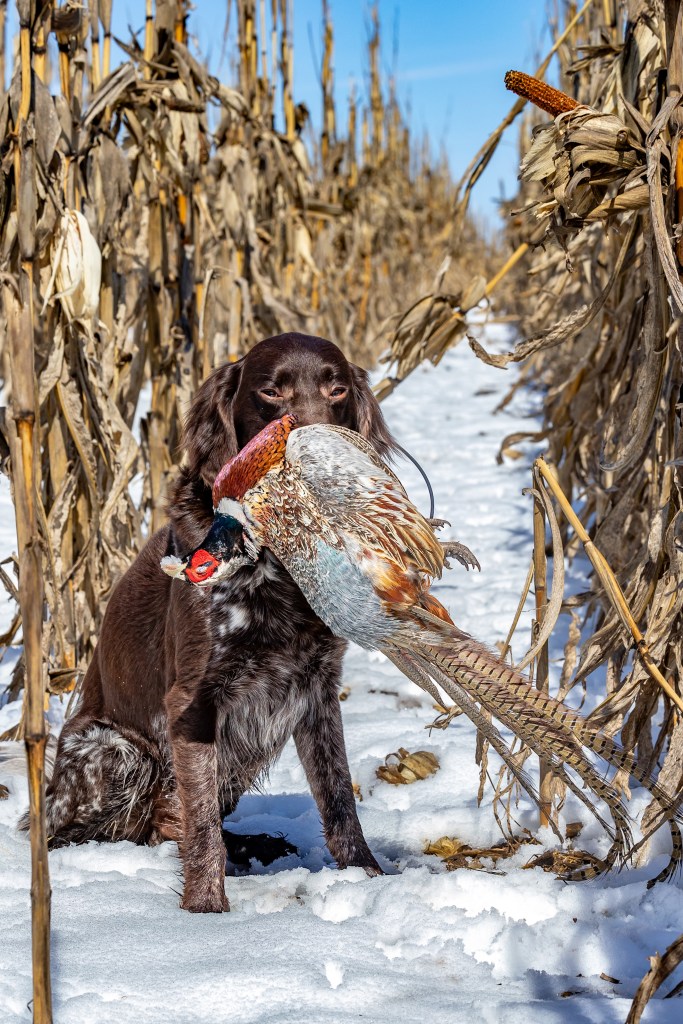 One of Scott’s most memorable hunting experiences with Lovec is when he was hunting him on the Iowa opener. At this time Lovec was only 7 months old and had minimal hunting exposure the summer before hunting season. Scott was out with Lovec and shot at a rooster but it went down and took off running. Scott watched Lovec via GPS track the pheasant 185 yards before catching it. What a day to remember! And that’s not the only long retrieve Lovec has made… When Lovec reached 2.5 years of age, Scott had another rooster try taking off on him, but this time Lovec didn’t see the bird hit the ground after the shot. Scott gave the “Dead Bird” command and once again, Lovec, tracked and retrieved the bird. Scott had it recorded on his GPS as a 365 yard track by Lovec and another retrieved bird to hand.