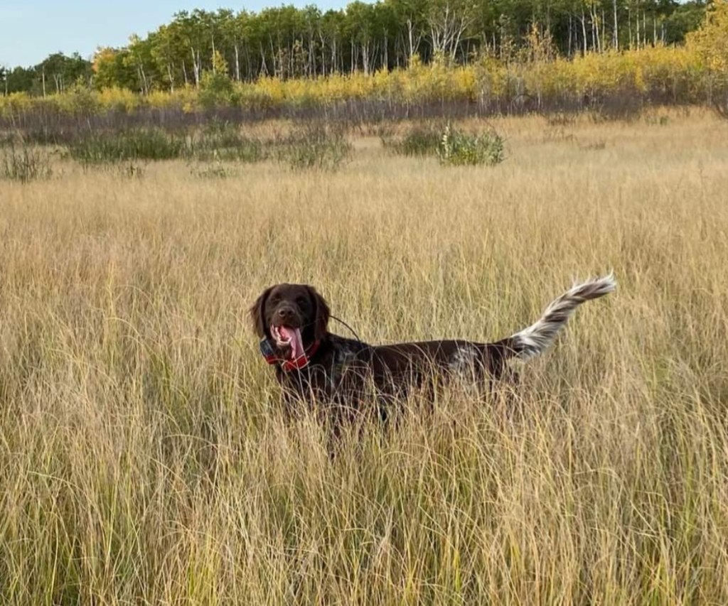 When hunting Lovec is very cooperative, quarters naturally and checks back often with Scott. His obedience shines when hunting as Lovec remembers his training and is always looking to please Scott. Lovec has hunted various species of upland and waterfowl including; quail, pheasant, chuckar, sharptail, ruffed grouse, ducks and geese. If Scott had the choice to hunt with one of his dogs, Lovec would be his first choice because of how enjoyable it is to hunt with a highly cooperative dog. Lovec has gone through the NAVHDA testing system to test his hunting abilities. Scott took Lovec through the NAVHDA Natural Ability Test at 15 months old earning a maximum score and a Prize 1. Lovec has also done higher level testing and ran the NAVHDA Utility Test earning himself a Prize 2. Scott also has taken Lovec through the AKC Hunt Test and Lovec earned himself a Master Hunter Title.