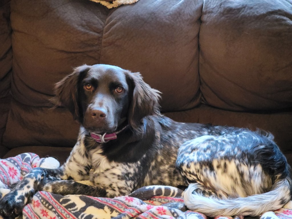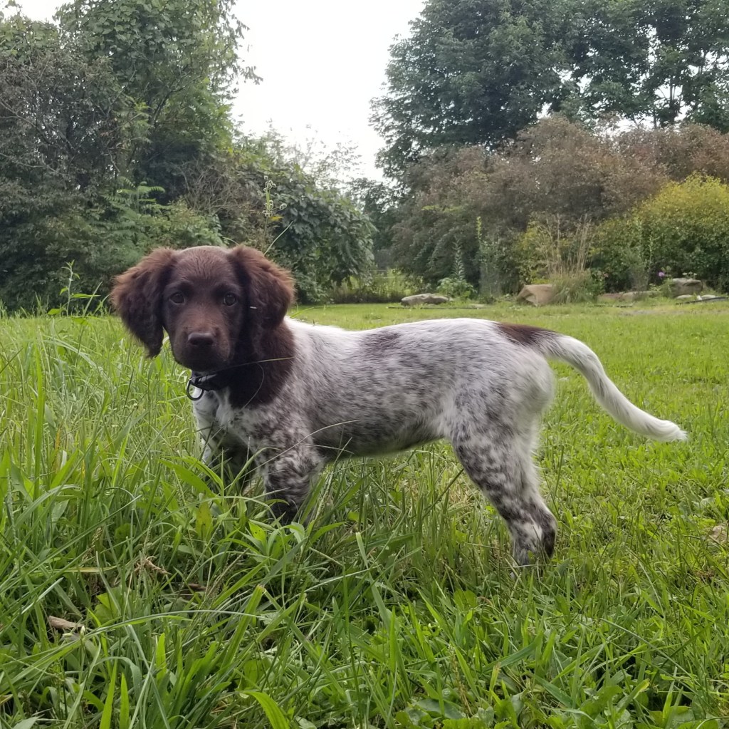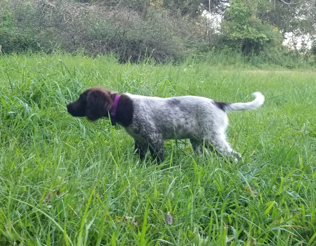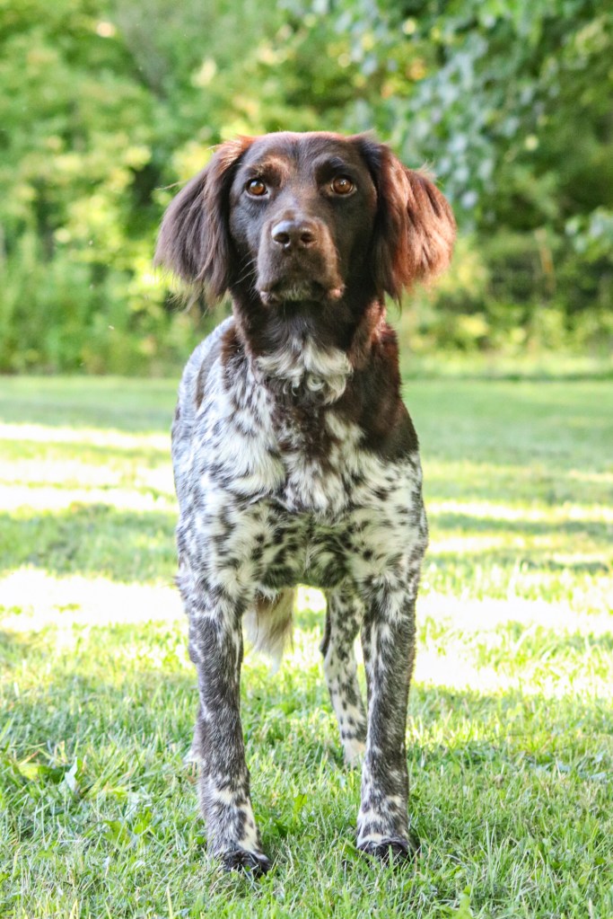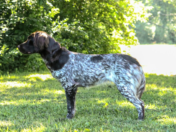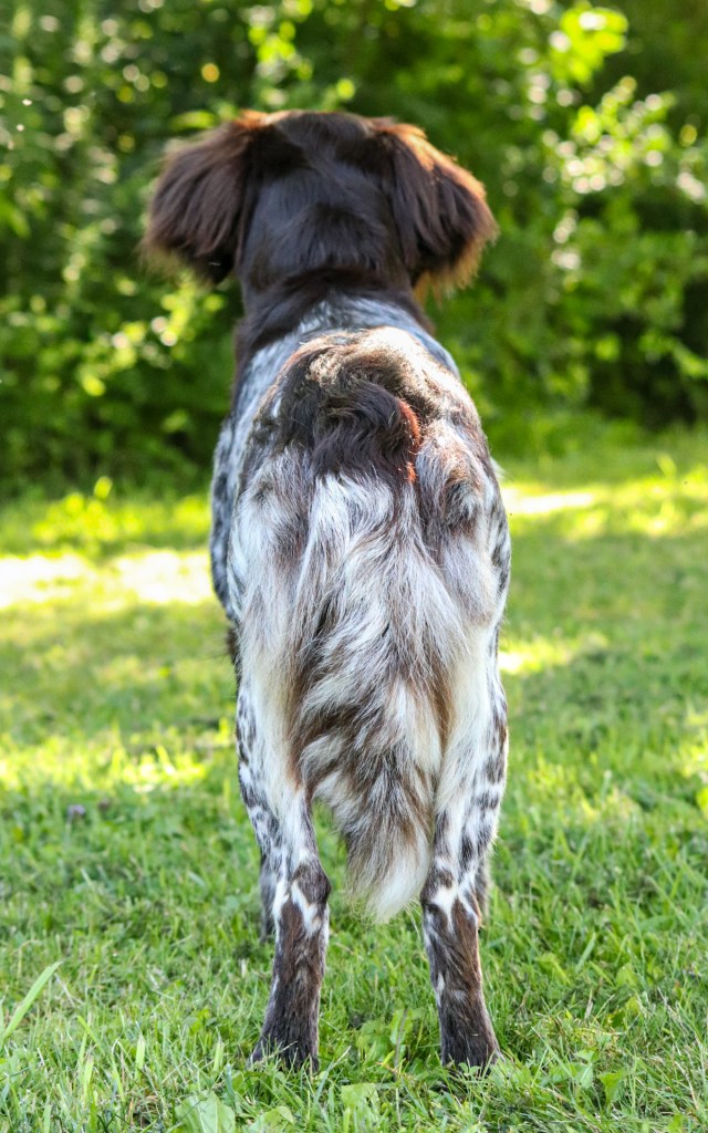 Conformation photos at 2 years old. Approved for breeding through the Small Munsterlander Club of North America.
