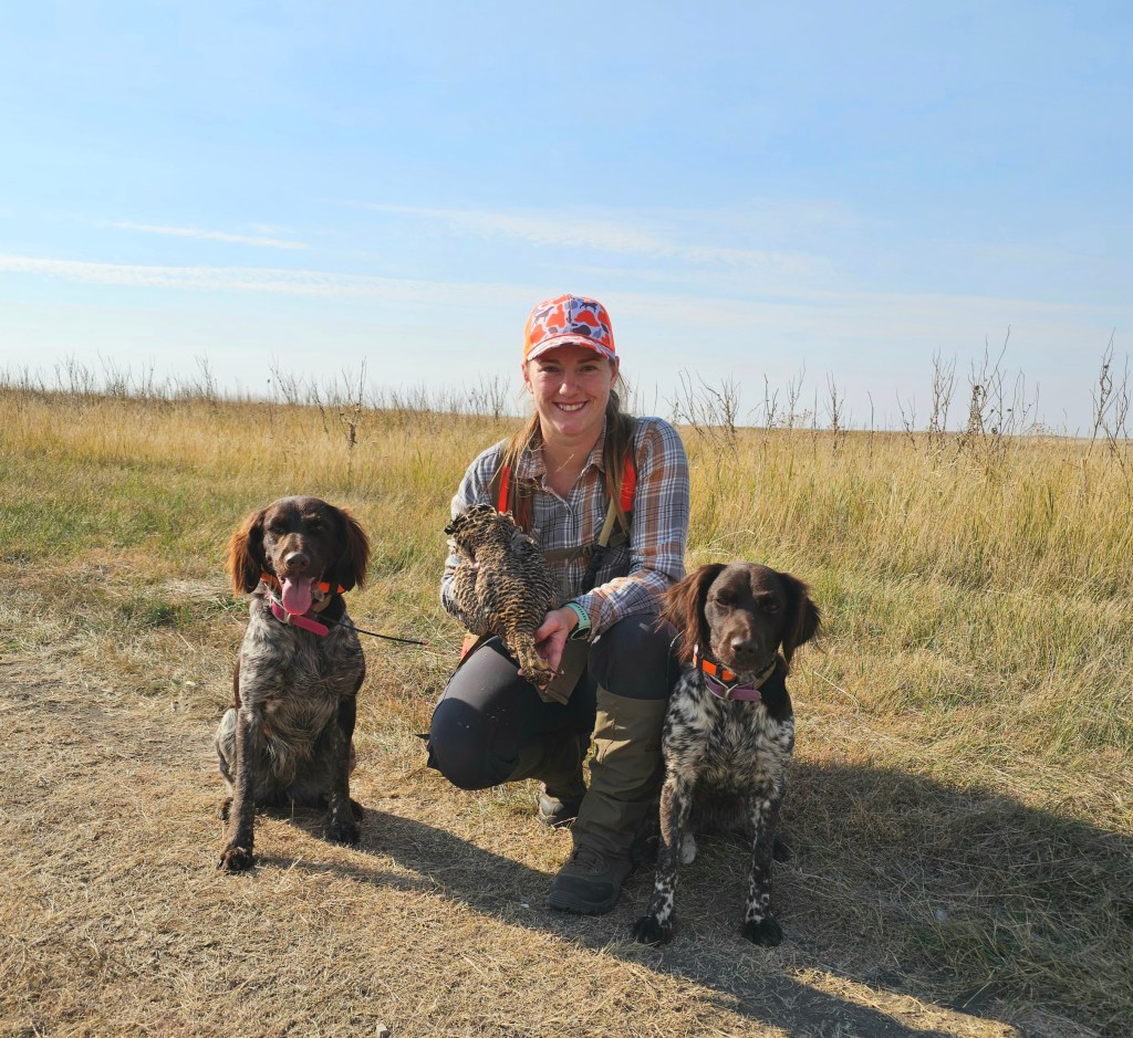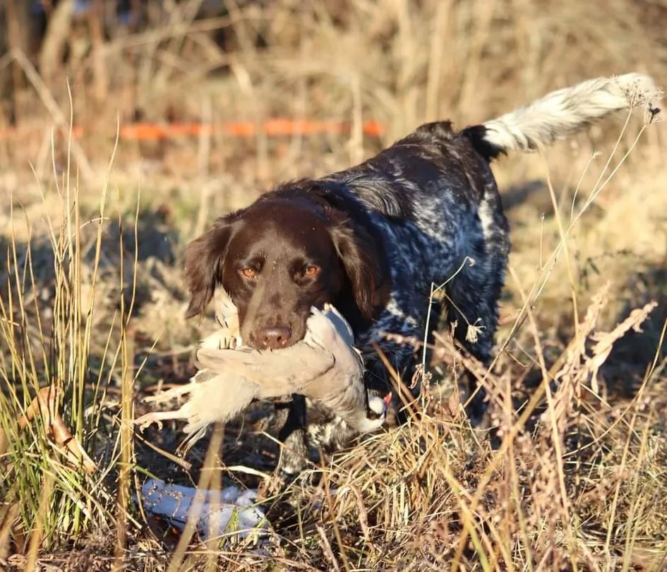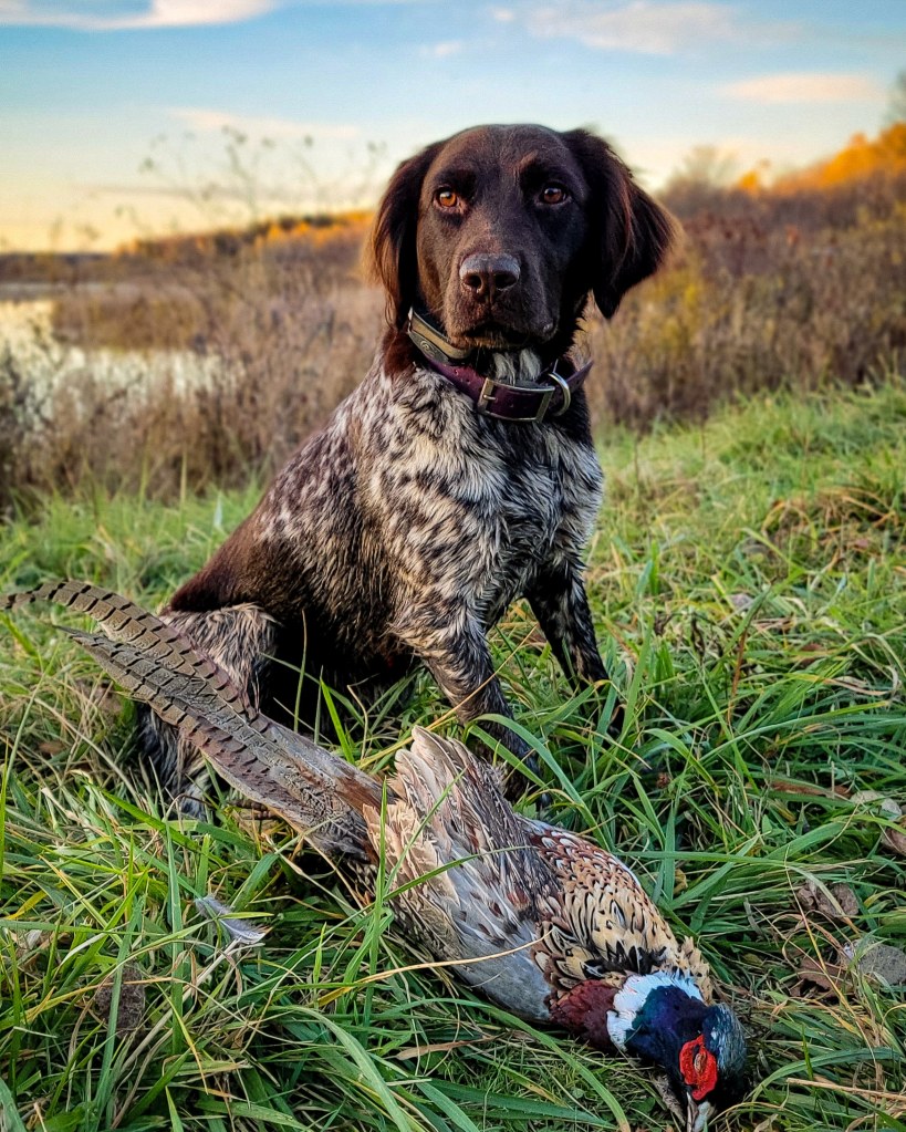Denver ran the NAVHDA natural ability test spring of 2022. She scored 110 earning a Prize 1. Now Denver is preparing for hunting season and started training for the NAVHDA utility test. So far with higher level training, we have noticed how eager Denver is to please. A very cooperative dog! She has been making me look very good through the training process. Loves the water and probably could be a dock dog with how she leaps into the water with every retrieve. We tested Denver in the NAVHDA Utility Test on September 28th, 2024 and she received a maximum score, Prize 1. In early fall 2025 Denver and I went to the NAVHDA Invitational at the Hawkeye Chapter in Springboro IA. The spring leading up to the test Denver had a litter born in April and was not back to training till June. We had 3 short months to prepare Denver for the invitational. We are very excited to announce that she passed the test and is our first Versatile Champion at our kennel!
