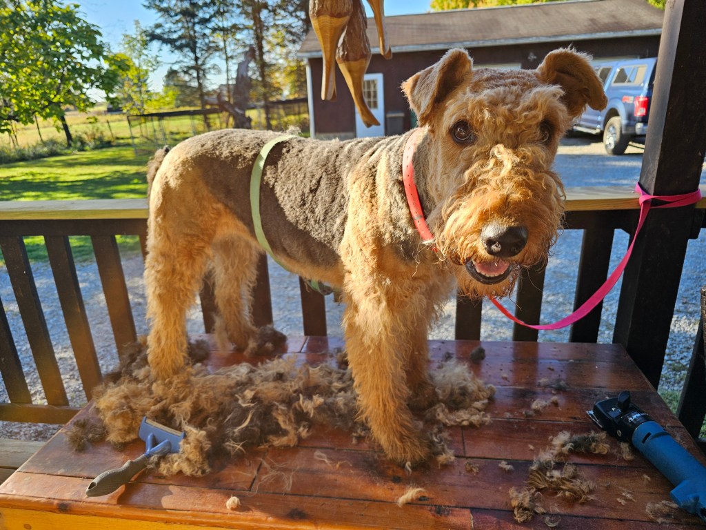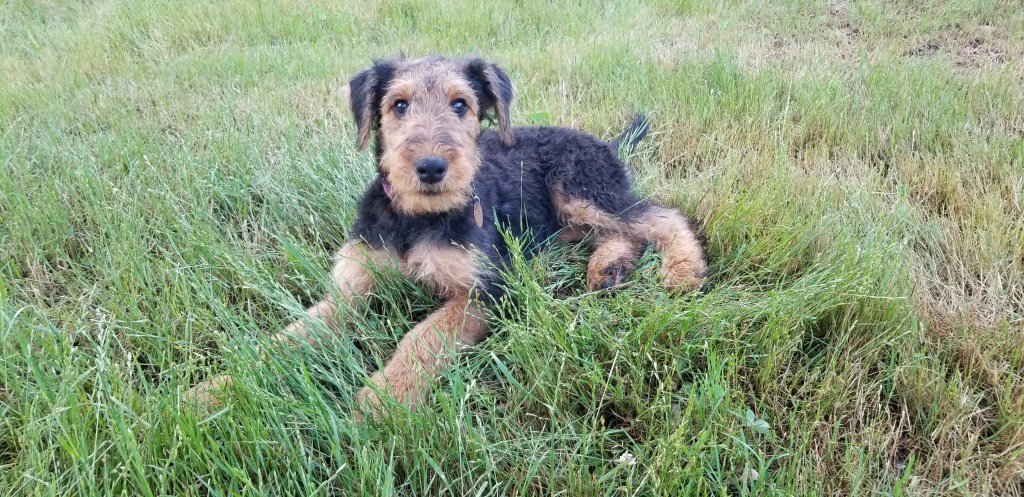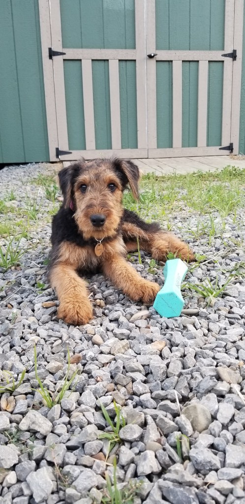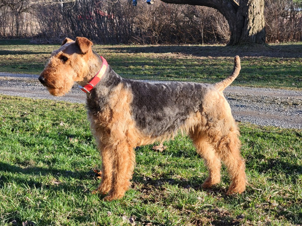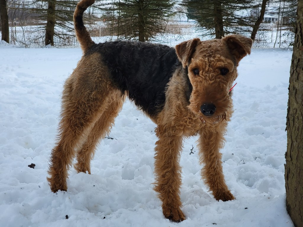 Please contact us if you are interested in Darby. I would like to have a phone call to discuss your interest. Airedales are not for novice owners and I’ll be selective in finding her the right home.