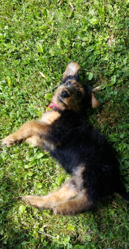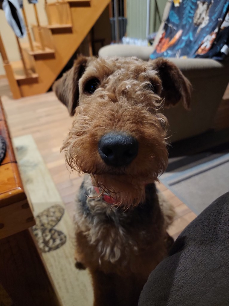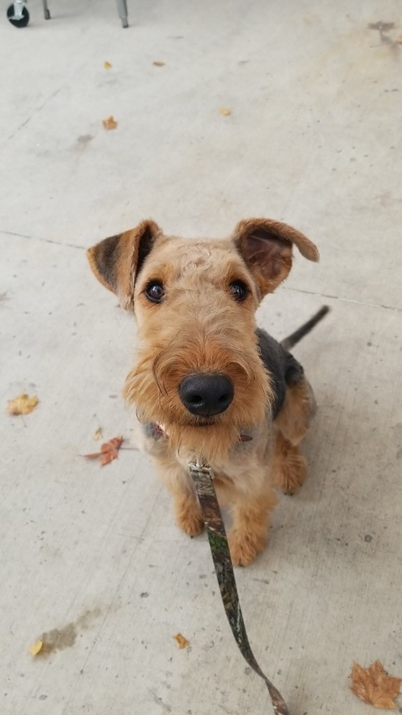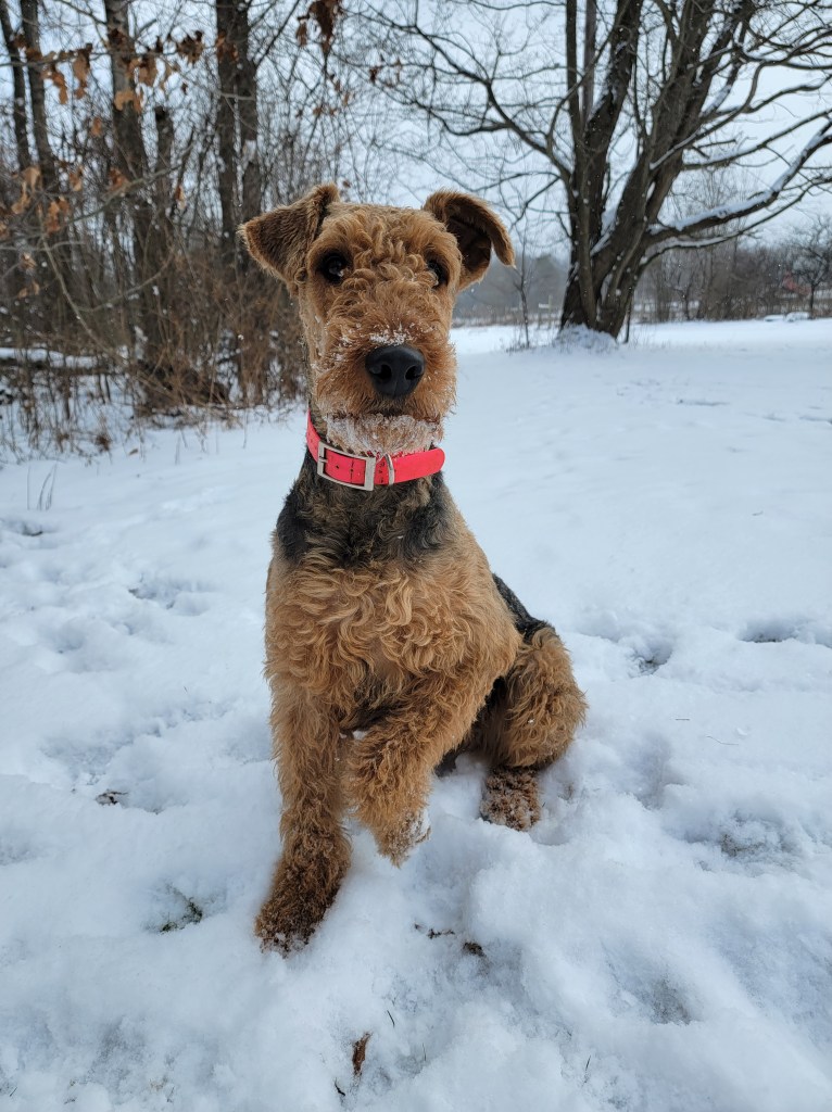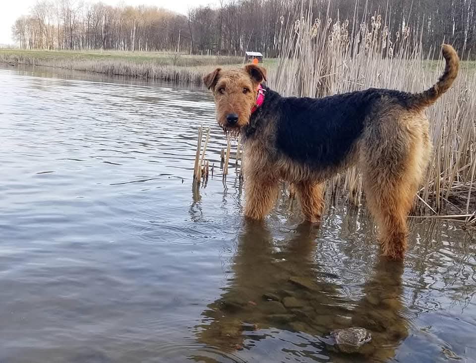 Please contact us if you are interested in Darby. I would like to have a phone call to discuss your interest. Airedales are not for novice owners and I’ll be selective in finding her the right home.