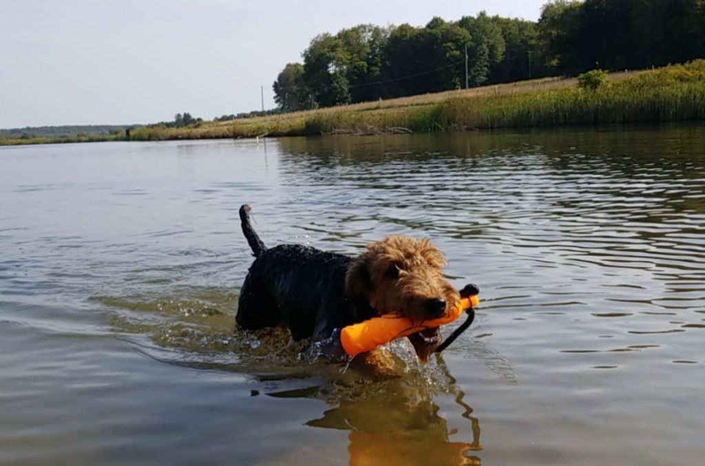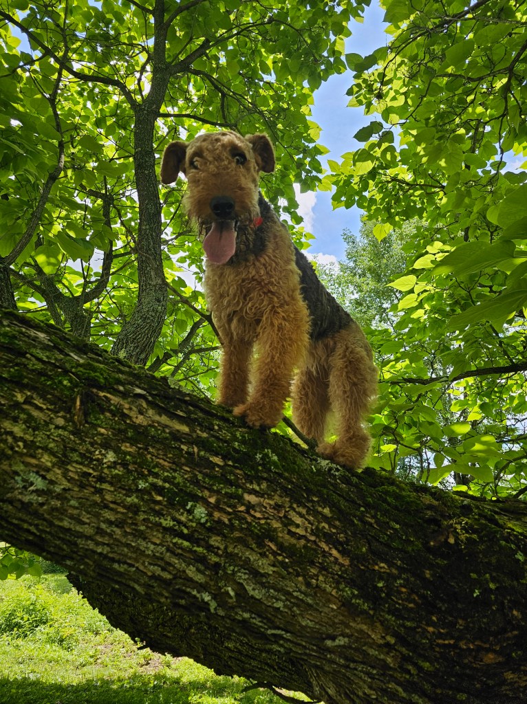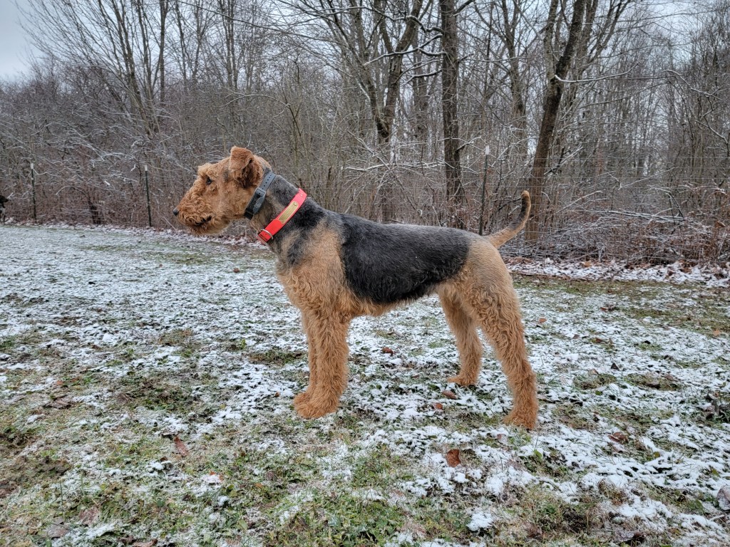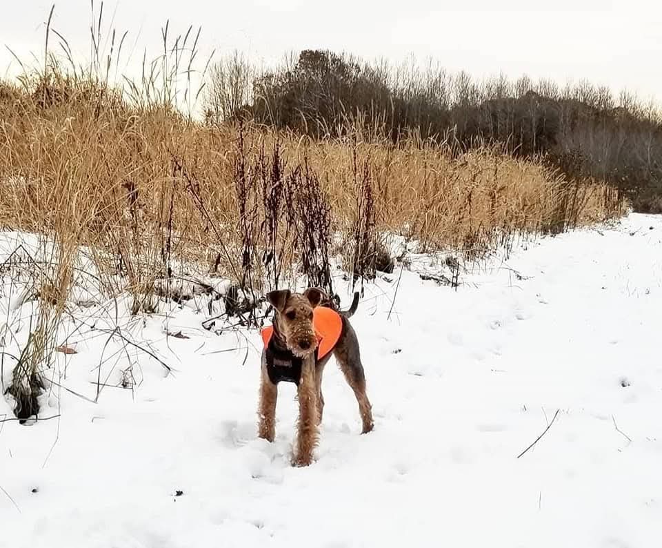Darby is the definition of an Airedale for sure! Full of life and spunk! Haha. I have hunted her in the past and she did well. She is a flusher and will retrieve almost to hand. She has only had upland experience on pheasants and chuckar. She is sharp on fur and will kill raccoons, woodchucks, rabbits, etc. I have started her on raccoon hunting. She does not tree the raccoons but she has done well locating them and dispatching them. She has never done waterfowl but I think she could if introduced.
