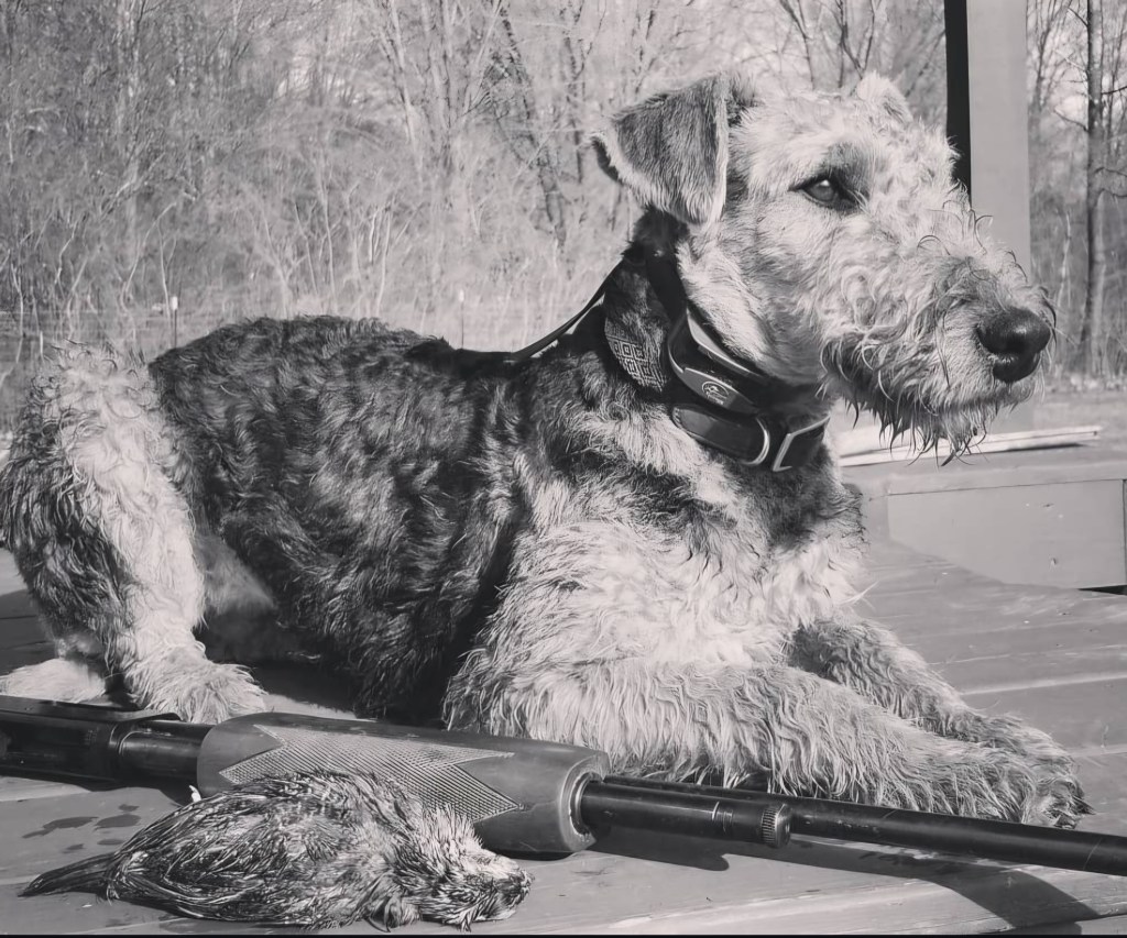 Not a Small Munsterlander, but we are offering our Airedale Terrier as a lightly started hunting dog and family pet.